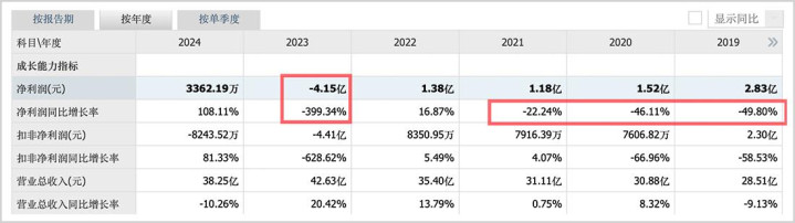 2019年至2021年,贵州百灵净利润均出现下滑,降幅分别高达49.8%、46.11%和22.24%。并在2023年出现上市来首次亏损。